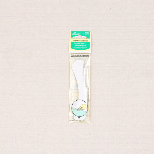 The Hera is used for marking sharp lines directly onto fabric. This tool can also be used with carbon paper. The Hera Marker is very useful as no powder marks are made, and it moves smoothly without damaging the fabric. Pressed firmly on smooth fabric, it makes a fine imprint. The slight crease is a sewing guideline that can be pressed away afterward. By Clover.