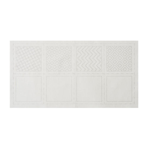 Preprinted cotton fabric with designs that disappear when washed. Enjoy combining different thread colors and designs to match modern interiors. Coasters are small and easy for a beginner! Finished coaster size is 10cm by 10cm. Hidamari Sashiko by Cosmo.