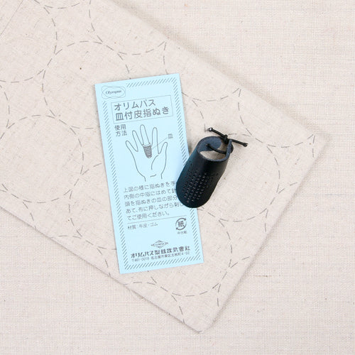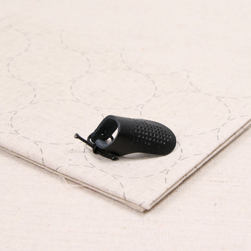 Japanese leather thimble perfect for sashiko. The elastic tie makes it adjustable! Learn how Benzie Maker Team Dani Miller uses this thimble in her beginner Sashiko tutorial!