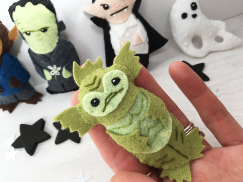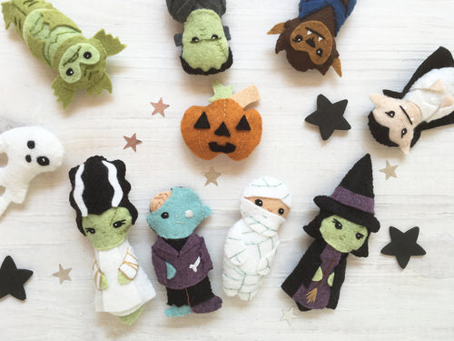These cute and creepy felt monsters are the perfect addition to your spooky sweet Halloween decor! You'll love stitching these fun, classic movie style monsters with this easy sewing pattern PDF. They are all here! Make Halloween tree ornaments, garlands, finger puppets and more.