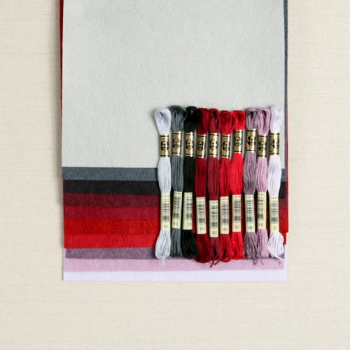 Curated by fulfillment team member Carinne, she notes "I built my palette around the color Black. I wanted to make a palette that not only represented me, but would feel different than any other palette Benzie Design has!" Includes the colors Silver, Graphite, Black, Burgundy, Cranberry, Brick, Red, Vineyard, Lilac and Opal. Coordinating Embroidery Floss is also available.