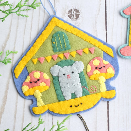 Tick tock, tick tock… right on time, these furry little animal friends pop out of their houses to say hello! With layers of appliqué and embroidery, the Clockwork Critters felt ornaments are a delightful little decoration for your wall. They even have a little “weighted” chain like a traditional black forest clock. Stitch one or stitch them all!