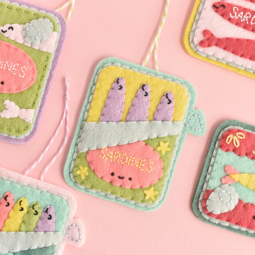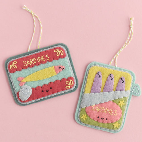 Sardine cans have never been so cute! Stitch up these felt ornaments to adorn your tree or simply as a fun way to show off your love of sardines.