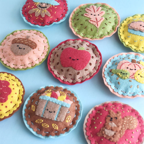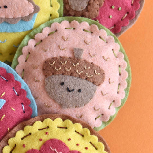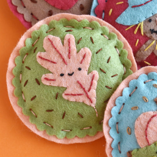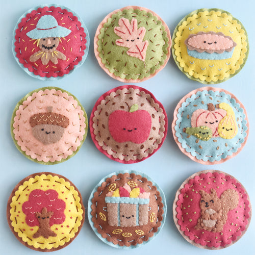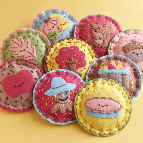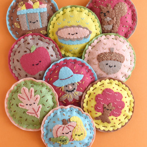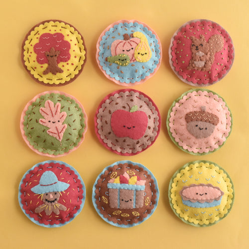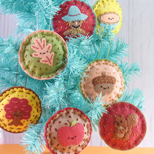 Celebrate fall with adorable felt ornaments! These sweet little round decorations feature kawaii-style designs using felt appliqué and embroidery. Think autumn leaves, a visit to the pumpkin farm, and harvest bounty. They'll remind you of all the things you enjoy during this season!