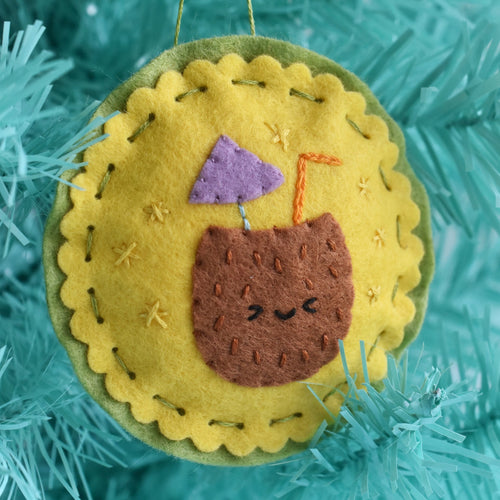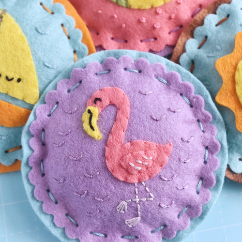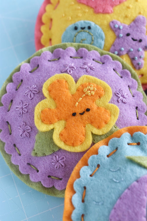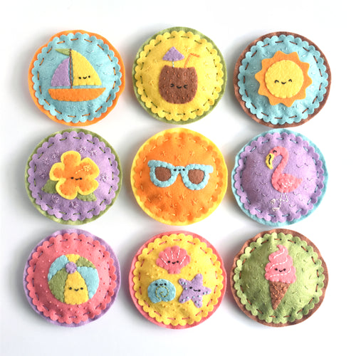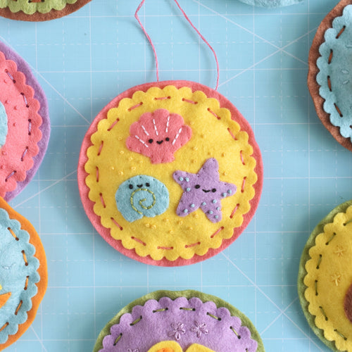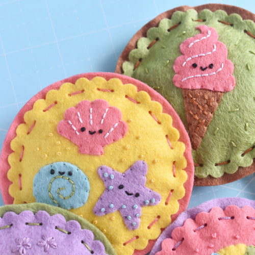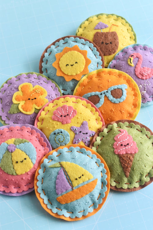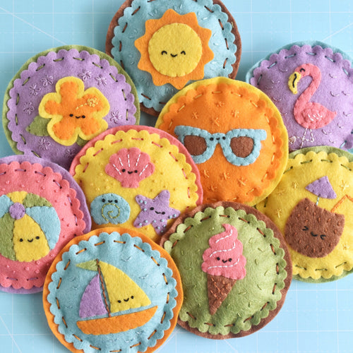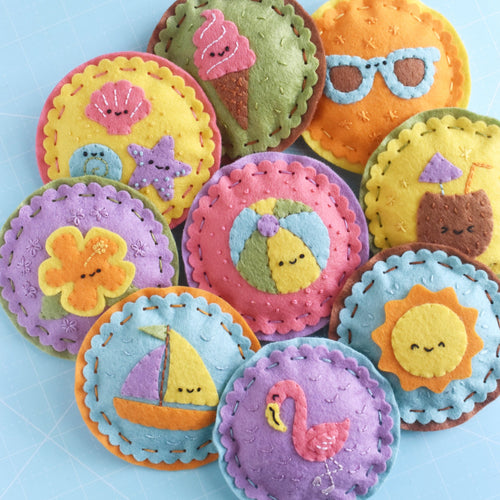 Celebrate summer with the adorable felt ornaments! These sweet little round decorations feature kawaii-style designs using felt appliqué and embroidery. Think sun, sand, and tropical fun. They'll remind you of all the relaxation and good times you enjoy during this season!