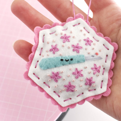 Gather 'round for a sewing bee with your favorite sewing tools on these DIY hexagon-shaped felt ornaments. They're the cutest friends to craft with!