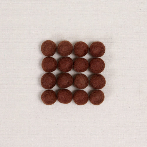Acorn Brown Felt Balls. Carefully hand felted by our partners in Nepal, expect some variance in size and color. Extra Small, Small, and Medium sizes include 50 poms per bundle. Large poms include 20 poms per bundle.