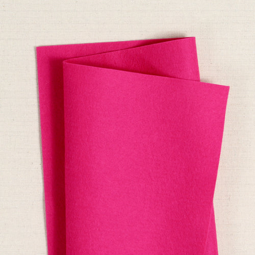Pure 100% wool felt in bright Cerise pink. Select from 9x12" sheets or 12x18" sheets. Coordinating DMC six strand embroidery floss and Sulky appliqué thread is also available.