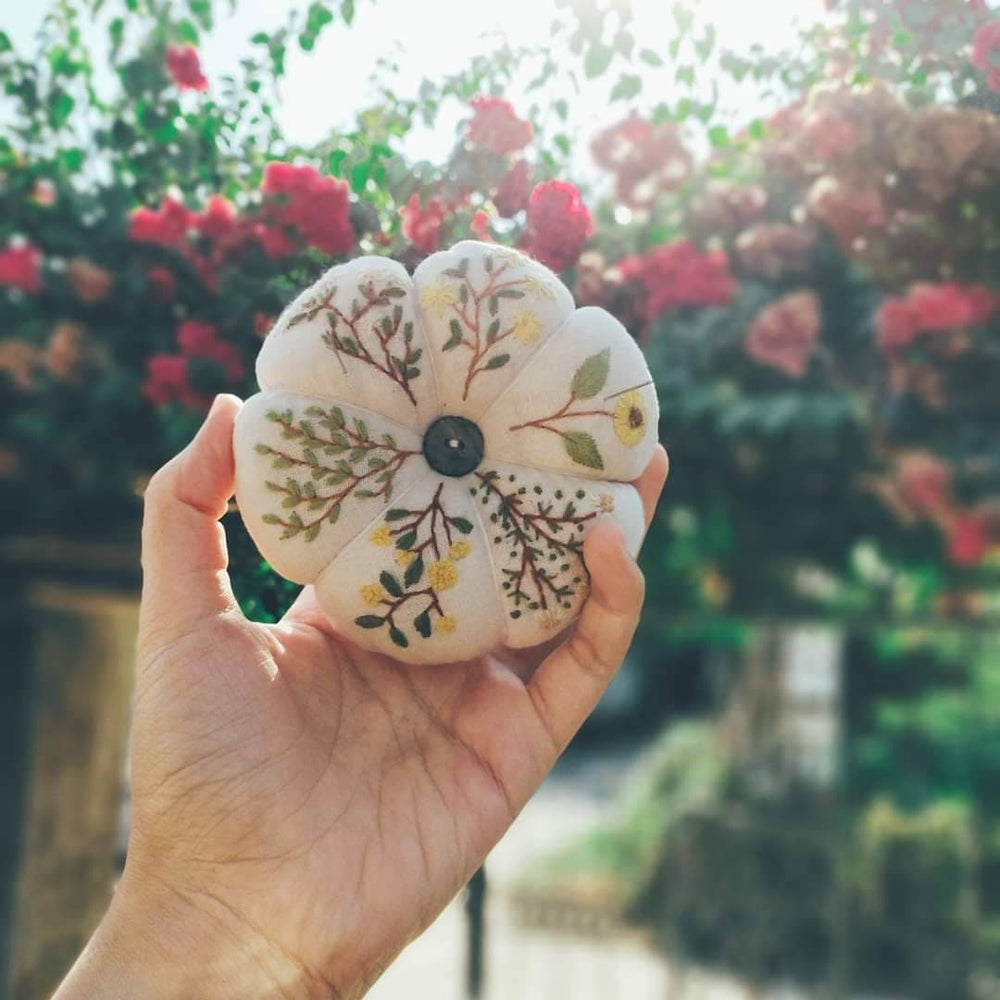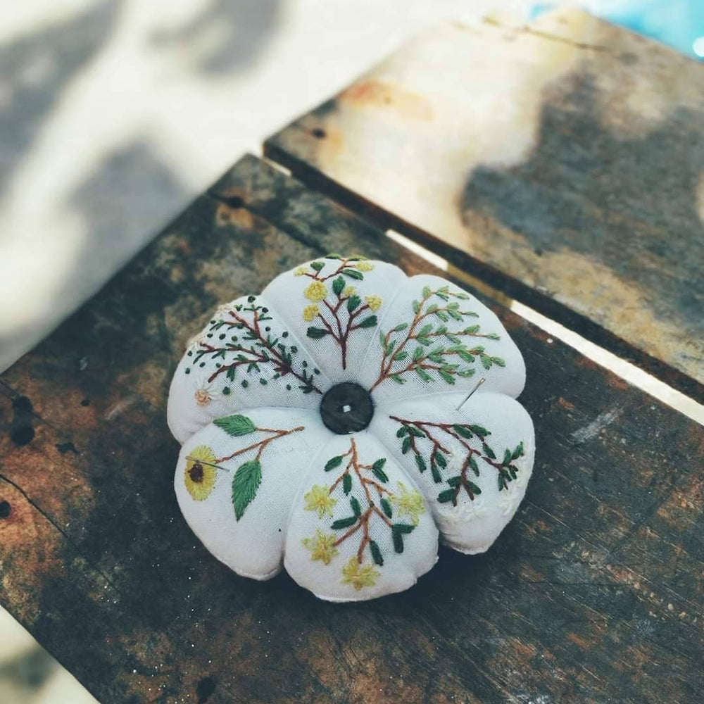 This beautiful pincushion features beautiful floral embroidery and would make a unique and lovely gift for you or anyone who enjoys sewing or handcrafting. A pretty addition to the sewing table!