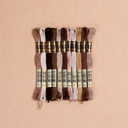 Enjoy the DMC's full selection of brown hues, from beautiful light beige to deep chocolates.