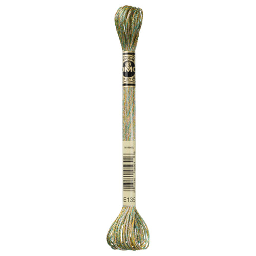 DMC 6-strand metallic embroidery floss is made of polyester and viscose blend and is washable, dry cleanable and resistant to tarnish. 8.7yd. By DMC, light effects floss.