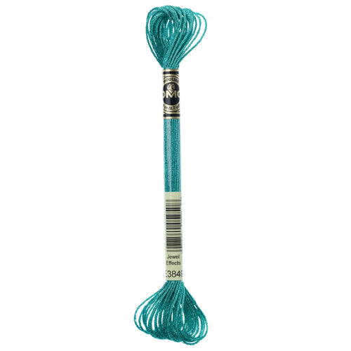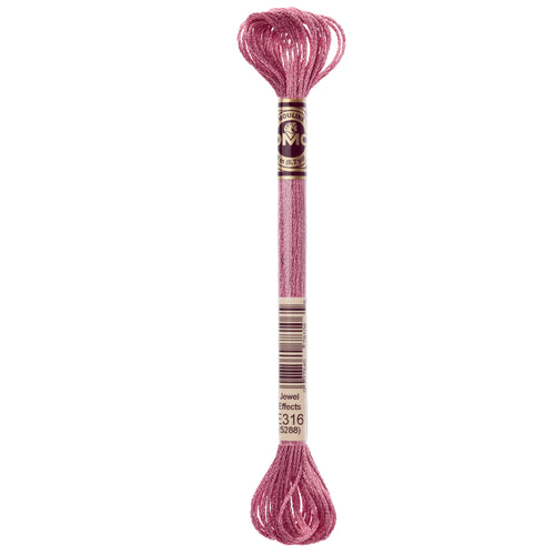 DMC 6-strand metallic embroidery floss is made of polyester and viscose blend and is washable, dry cleanable and resistant to tarnish. 8.7yd. By DMC, light effects floss.
