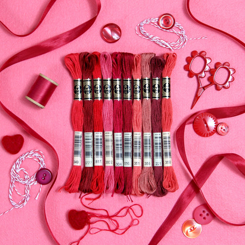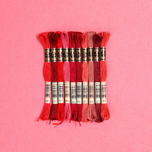 Enjoy the DMC's full selection of red hues, from blush to deep burgundy.