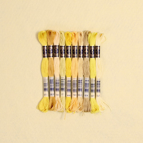 Enjoy the DMC's full selection of yellow hues, from butter to goldenrod.