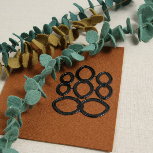Create three-dimensional preserved Eucalyptus sprays! Use our coordinating felt palette to get the hues seen in the photo. Follow our diy here! The sizes of the four dies are 2 3/4 x 1 1/4", 2 1/2 x 1", 2 x 3/4", and 1 3/4 x 3/4".