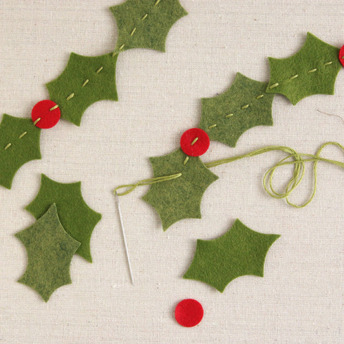 Felt-fetti for your holiday parties! You will receive 24 holly leaves and 12 berries. The holly measures approximately 2 1/2" by 1 1/2 inches wide and the berries are 3/4" wide. Select any 4 colors for the leaves and one color for the berries. The first photo shows Fern and Moss holly with Red berries (standard palette that will be sent if no alternate colors are selected).