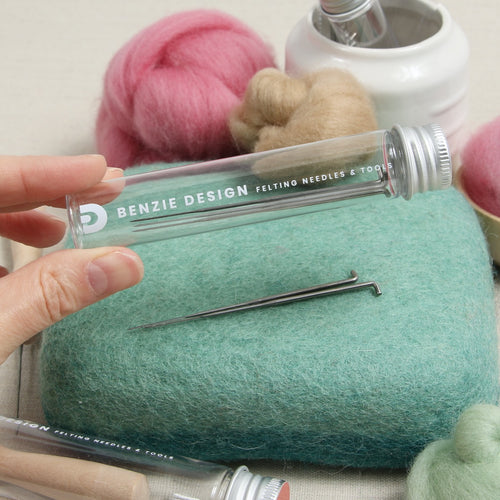 Our felting needles are held to the highest manufacturing standard making these a superior needle that will hold up longer! However, please keep in mind that while our needles are more durable than the common needle, all needles do wear out and can break. Use with caution. Each needle is 3" long and includes 3 barbs per side. Made from high carbon steel. Includes 5 needles per tube.