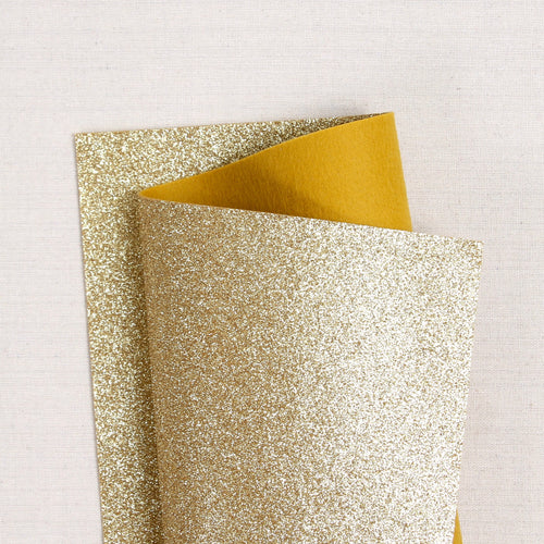 Add a bit of shine or a whole lot of sparkle with Benzie's glitter felt in Gold! The best part? The glitter sticks just where it needs too -no messy fairy dust to clean up! Glitter felt is rough and sparkly on the glitter side and soft and smooth just like the felt you are used too! Felt side coordinates with our Mustard felt. Use any way you use regular felt. Approximately 1mm thick.