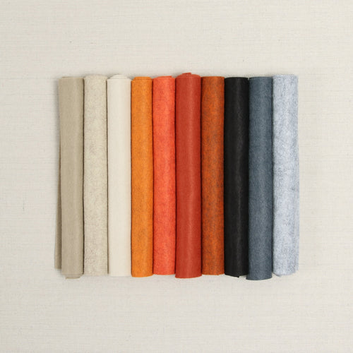 Inspired by the Home, Sweet, Haunt fabric and ribbon collection by Stacy Iest Hsu, this palette includes two limited edition colors of Hubbard and Anise. Includes 10 wool blend felt colors in Castle, White Truffle, Almond, Pumpkin, Hubbard, Copper, Anise, Black, Graphite and Smoke. Coordinating Embroidery Floss is also available.