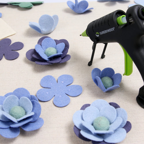 Next to stitching -hot glue is our go-to for felt crafting. This mini sized glue gun includes our most narrow nozzle which is essential for detailed felt gluing and a favorite among felt florists! High temp glue gun comes with 12 glue sticks. Don't forget to purchase additional glue - it includes 5 feet roll of hot glue! By SureBonder.
