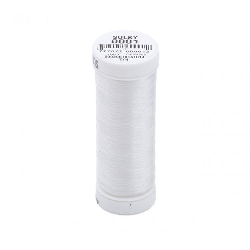 Sulky Premium Invisible thread is a very fine .004 monofilament that is soft enough for baby quilts or garments that will be worn next to the skin. Quilters prefer our polyester invisible thread instead of nylon because it has a more flexible, soft touch. It is much more heat tolerant than nylon; it will not melt with normal ironing through the cotton setting. Works well in the bobbin; also ideal on sergers. It does not fuzz, fray or shrink.