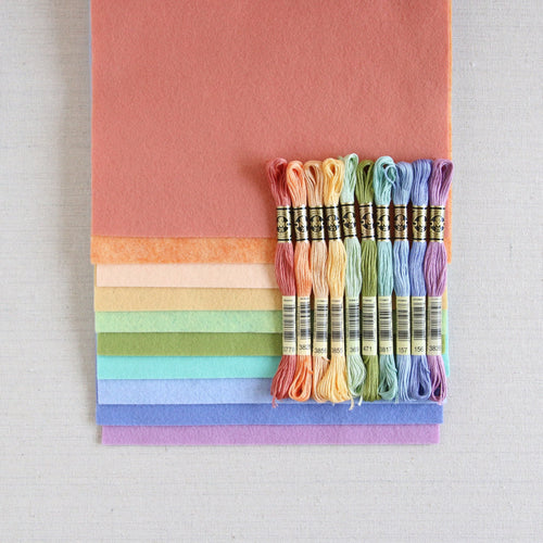 Coordinating DMC six strand embroidery floss and Sulky appliqué thread is also available.
