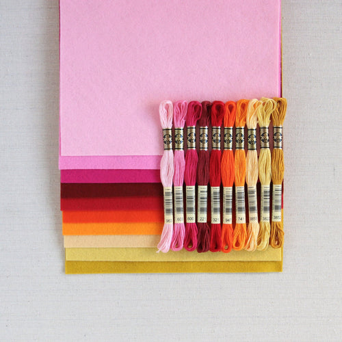 Coordinating DMC six strand embroidery floss and Sulky appliqué thread is also available.