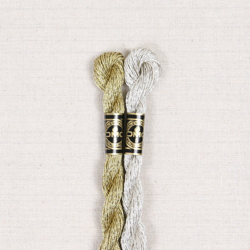 A non divisible, polyester metallic and viscose blended thread on a twisted skein. Works well as an accent in needlepoint and embroidery pieces. Ideal for holiday projects. Size 5. Length: 27yd (24.5m). By DMC.