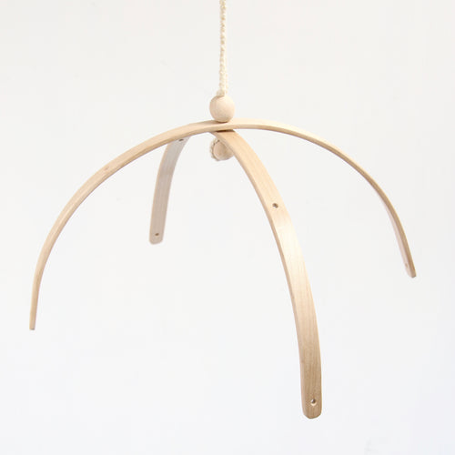 Create a hanging mobile for your babies nursery! Natural acacia mobile arches are about 10" apart and 5 1/2" tall. Arrives assembled but flattened.