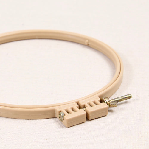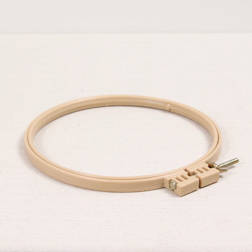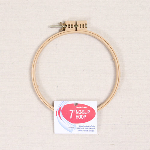 Hoop tension is often a difficult thing to control, especially with larger hoops. This innovative 7" hoop features a rim on the inside of the hoop that adds a bit more bite to hold your hoop contents taut. Perfect for punch needle! Includes one 7 inch plastic hoop, made in USA. Morgan Products.