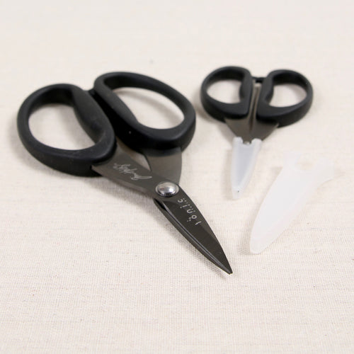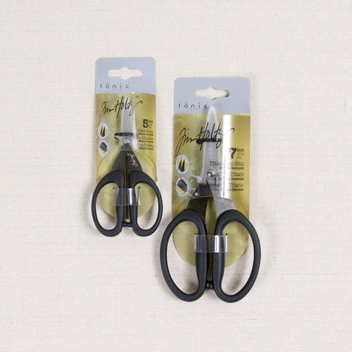 Benzie's most comfortable scissors for detail cutting -and even comes with a tight fit sheath! These scissors are being endorsed by Tim Holtz because of their overall quality, their duo-tipped feature (one serrated blade and one fine point sharp tip blade) for excellent cutting on all types of materials like Benzie's felt. Extra large soft cushion over-molding plastic handles offers a comfortable grip for hours of use and less fatigue. Non-stick coating means no build-up of adhesive. Available in a 5" or 7" option. By Tonic Studios.