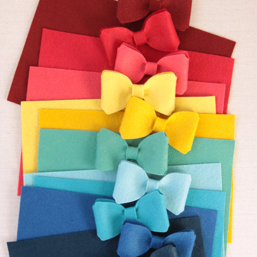Our felt is a blend of 20-35% wool with the rest rayon; approximately 1mm thick. Our wool is only from merino sheep, prized for their quality and softness and making Benzie's felt strong, resistant to pilling, and colors vibrant.