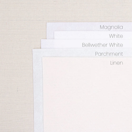 Benzie's wool blend felt in Parchment, white with slight gray undertones. Select cut sheets or yardage-multiples of 1/2 yard cuts will yield one uncut sheet. Our bolts are approximately 36" wide. Full bolts are 40% off the retail price of cut sheets. Inventory on full bolts is limited, please contact us for availability.