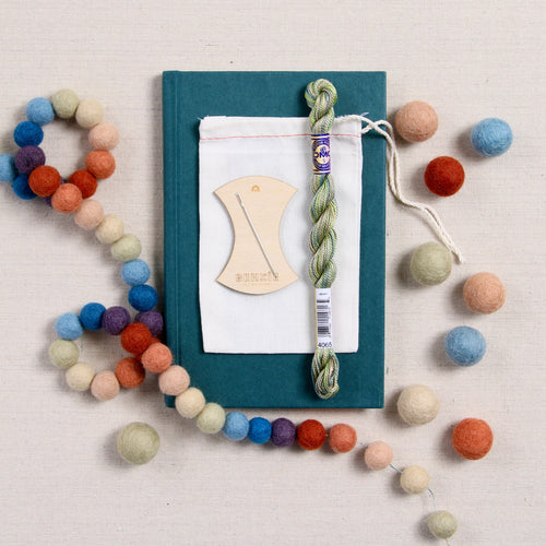 This kit includes everything you need to string a garland. Our needle and thread glide effortlessly through our poms-making it truly child's play! A thread winder is included to help keep your threads tidy. Pick your favorite coordinating color! Felt poms are sold separately.