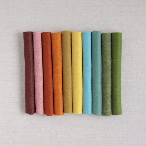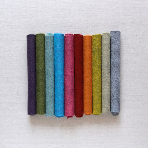 Our felt is a blend of 20-35% wool with the rest rayon; approximately 1mm thick. Our wool is only from merino sheep, prized for their quality and softness and making Benzie's felt strong, resistant to pilling, and colors vibrant.