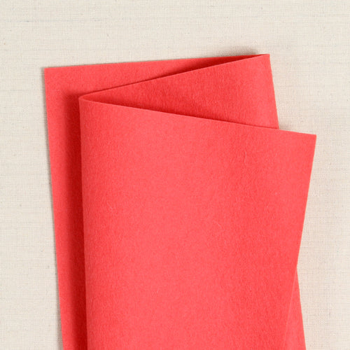 Pure 100% wool felt in Rhubarb. Select from 9x12" sheets or 12x18" sheets. Coordinating DMC six strand embroidery floss and Sulky appliqué thread is also available.