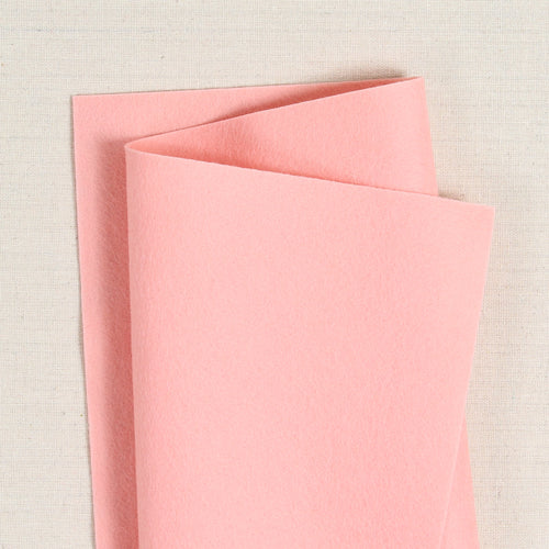Pure 100% wool felt in light Tellina pink. Select from 9x12" sheets or 12x18" sheets. Coordinating DMC six strand embroidery floss and Sulky appliqué thread is also available.
