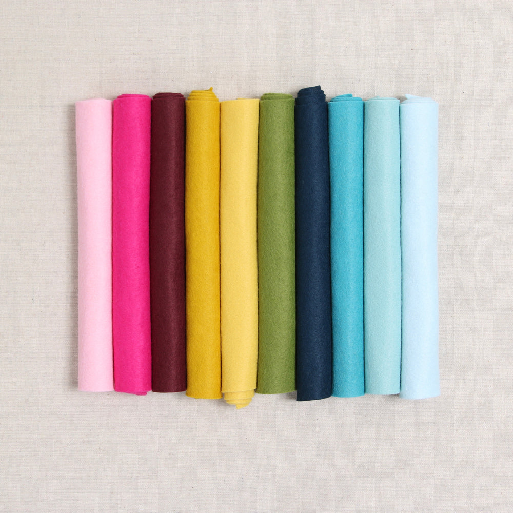 Our felt is a blend of 20-35% wool with the rest rayon; approximately 1mm thick. Our wool is only from merino sheep, prized for their quality and softness and making Benzie's felt strong, resistant to pilling, and colors vibrant.